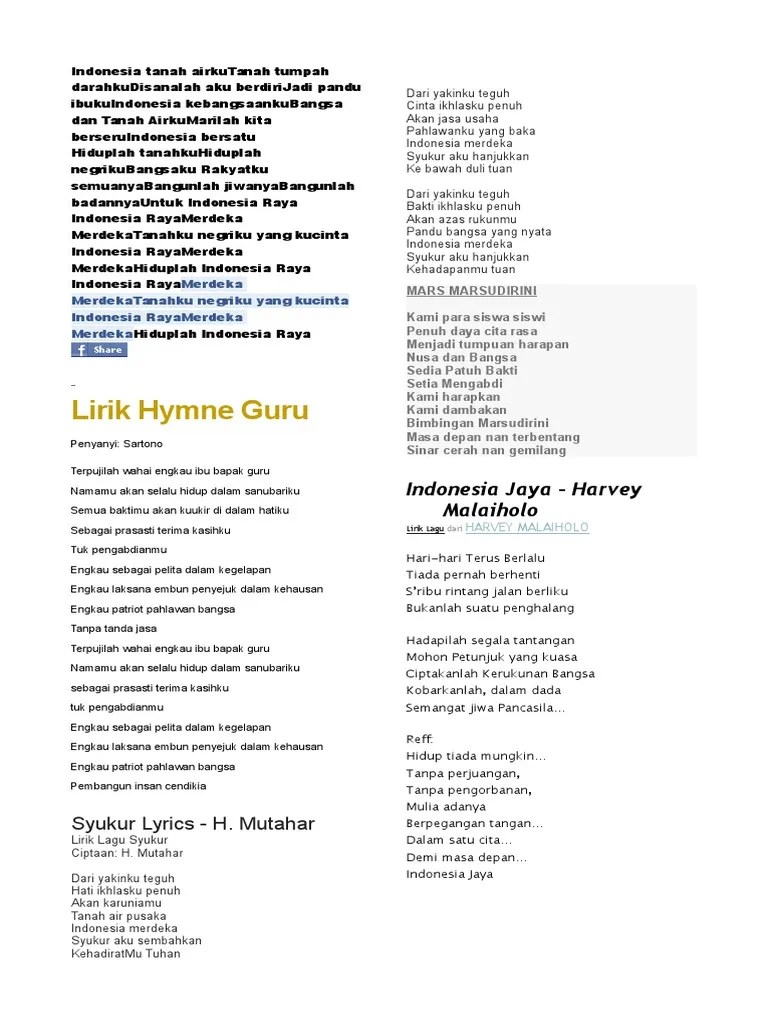 Untuk menemukan lirik lagu harvey malaiholo selain dari lagu yang ini . The 1st winner song taken from. Ayu ting ting citra scholastika petra sihombing . Demikian lirik lagu indonesia jaya dipopulerkan oleh penyanyi legendaris indonesia, harvey malaihollo.***. Informasi lirik, makna, not, arti dan sejarah lagu indonesia jaya, salah satu lagu wajib nasional indonesia yang di tulis oleh chaken m. Lirik indonesia jaya oleh harvey malaiholo. G d sribu rintang jalan berliku c d. A b s'ribu rintang jalan berliku Inilah lirik lagu indonesia jaya yang dikenal dibawakan oleh harvey malaiholo. intro a d a d. Layanan mobile dari situs entertainment terbesar indonesia, kapanlagi.com. Harvey malaiholo judul lagu :